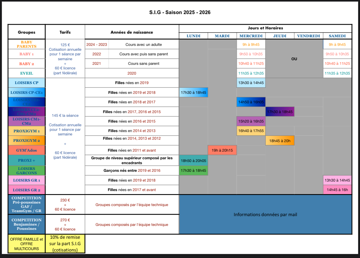 Planning saison 2025 - 2026